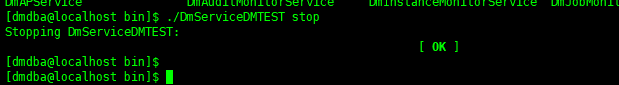[dmdba@~]$ /home/dmdba/dmdbms/bin/DmServiceGRP1_RT_01 stop