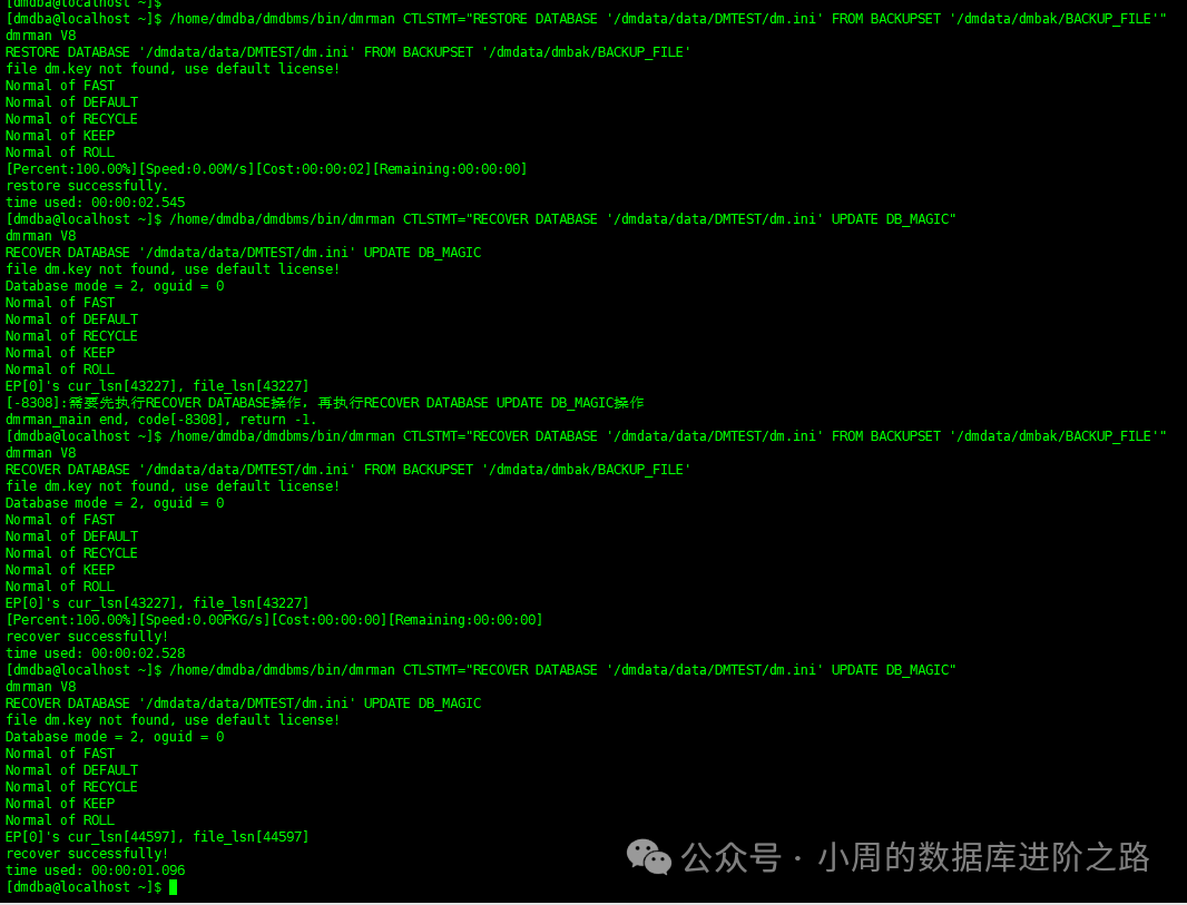 [dmdba@~]$ /home/dmdba/dmdbms/bin/DmServiceGRP1_RT_02 start