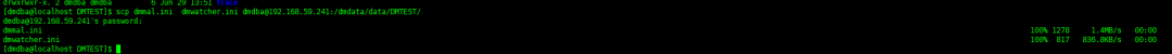 [dmdba@localhost DMTEST]$ scp dmmal.ini dmwatcher.ini dmdba@192.168.59.241:/dmdata/data/DMTEST/