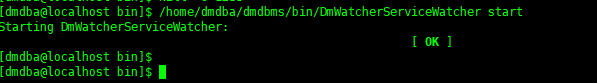 [dmdba@~]$ /home/dmdba/dmdbms/bin/DmWatcherServiceWatcher start