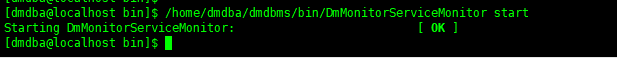 [dmdba@localhost bin]$ /home/dmdba/dmdbms/bin/DmMonitorServiceMonitor start
