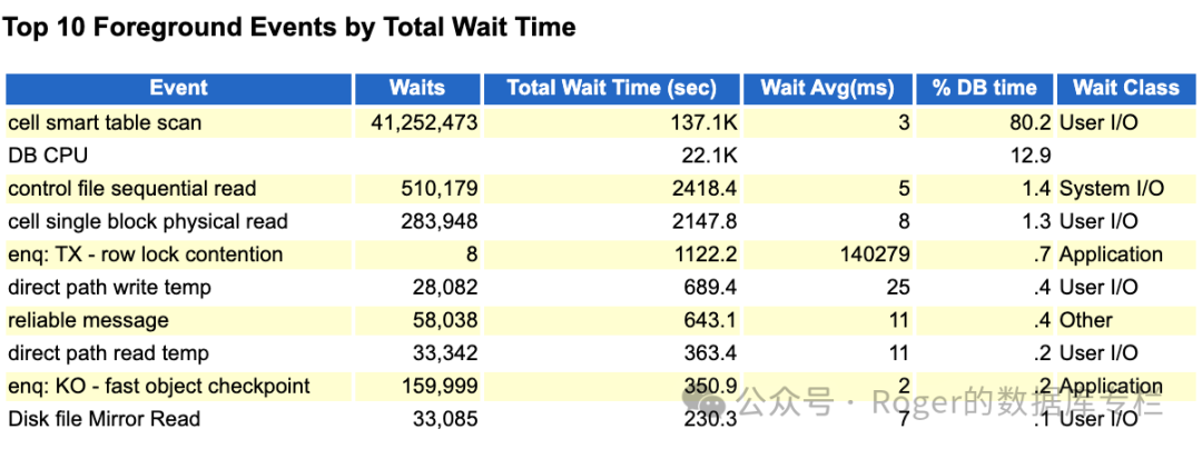 cell smart table scan可以理解为全表扫描,只不过这是Oracle exdata x7的环境,同时我们也可以看到cell single block physical reads 似乎慢了很多。
