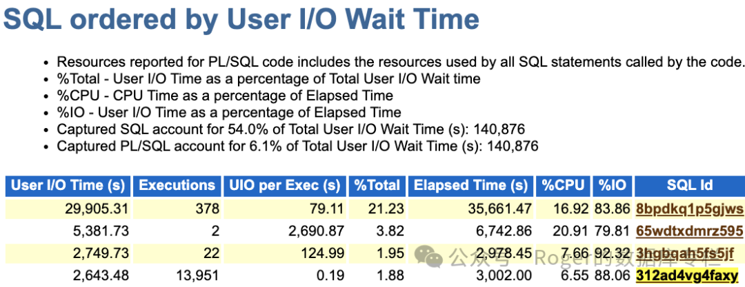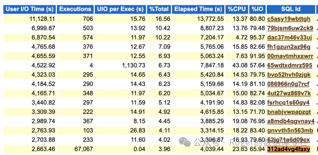 实际上要判断是不是IO影响了,那么我们可以找个awr中的业务sql看看就知道了。如下是前后2份报告的部分截图: