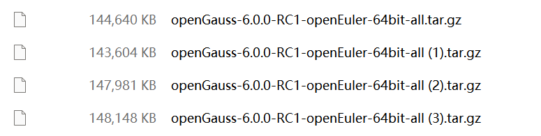 为了开发支持 openGauss 企业级部署的 dbops1.3 版,我下载了所有相关软件包。下载后,我发现了四个包,包名是一样的,这让我疑惑是否重复下载了。显然不是,因为这些包的大小各不相同。