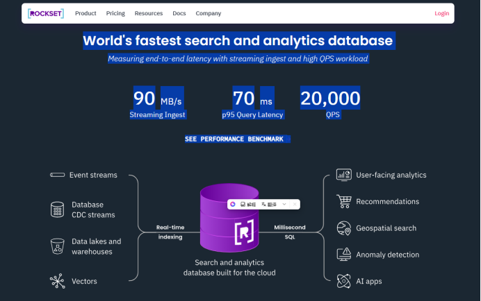 Rockset以云原生方式构建其软件,并将其作为无服务器服务在云上提供。最近几个月,该公司增加了向量数据类型和向量搜索功能,使客户能够使用他们的数据库为 ChatGPT 等大型语言模型提供数据。
