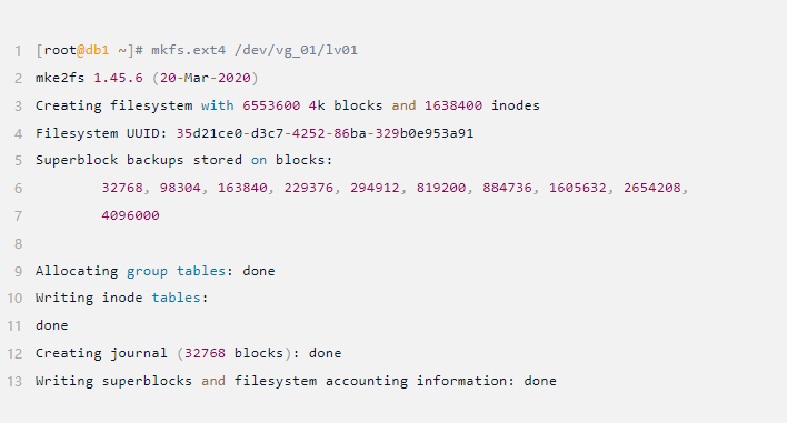 1)创建名为 vg_01 的 VG,包含物理卷/dev/vdb 和 /dev/vdc。