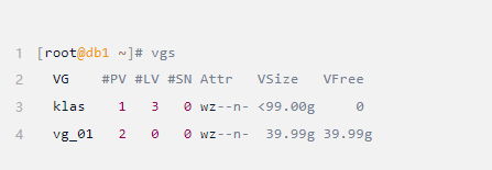G的大小小于40GB,因为文件系统占用VG中的存储空间。