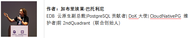 本文介绍了我对这一重要时刻的看法,回顾了我自 2019 年在 2ndQuadrant 启动 Kubernetes 上的 PostgreSQL 以来的五年历程,最终让我参与了 CloudNativePG[6]、 CNCF和 Kubernetes 上的数据[7]社区。