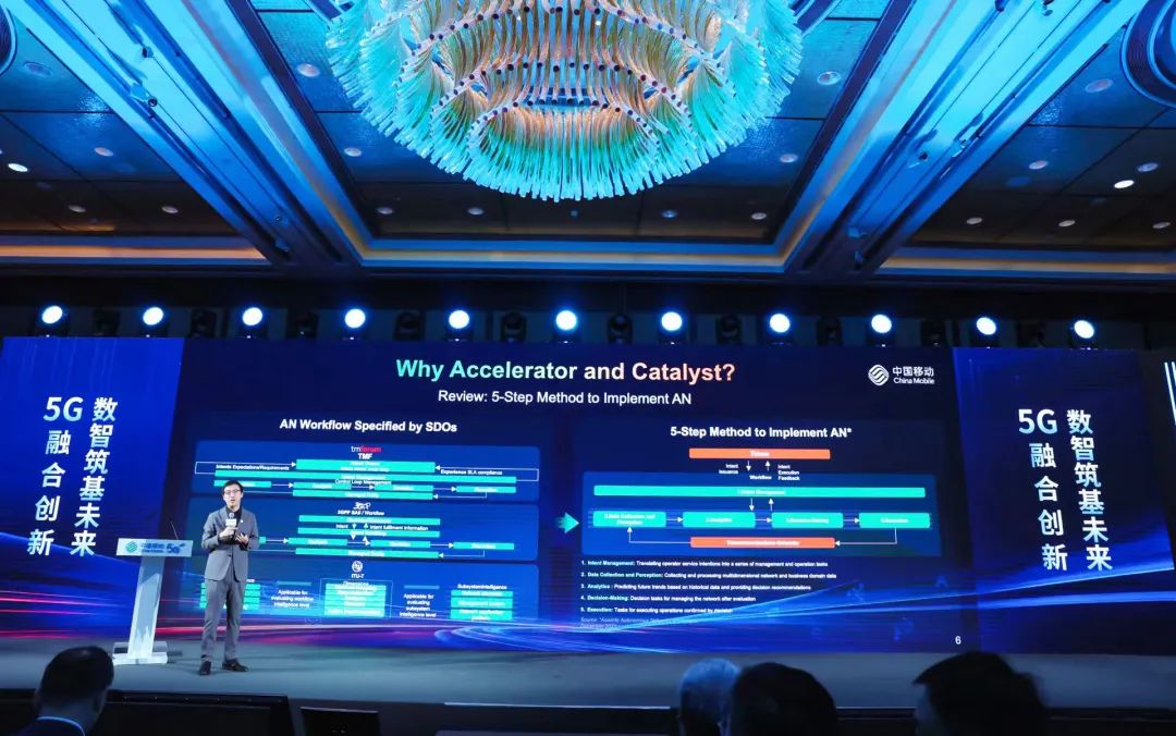 欧阳晔受邀出席中国移动主办的网络发展与安全论坛,携手中国移动副总经理李慧镝以及中兴、诺基亚贝尔等企业高管发布“中国移动网络数智化转型创新成果”,并发表《自智网络副驾加速自智网络向L4演进》主题演讲。他表示,当前大模型技术在自智网络领域应用日益广泛,亚信科技自智网络副驾作为自制网络的加速器与催化剂,助力中国移动自智网络加速向L4演进。欧阳晔受邀出席中国联通Open Gateway与数智融合论坛,发表《面向Open Gateway的Private 5G能力开放初探》主题演讲。他认为随着5G专网商用案例不断增多,特别是5G虚拟专网(即网络切片)的部署,开放5G专网能力对于客户数智化转型至关重要。亚信科技基于Open Gateway对5G专网能力开放进行了探索分析,在现有5G网络切片开通API的基础上,提出5G LAN与TSN能力开通API,有效提升5G网络切片对垂直行业数智化应用的支持。