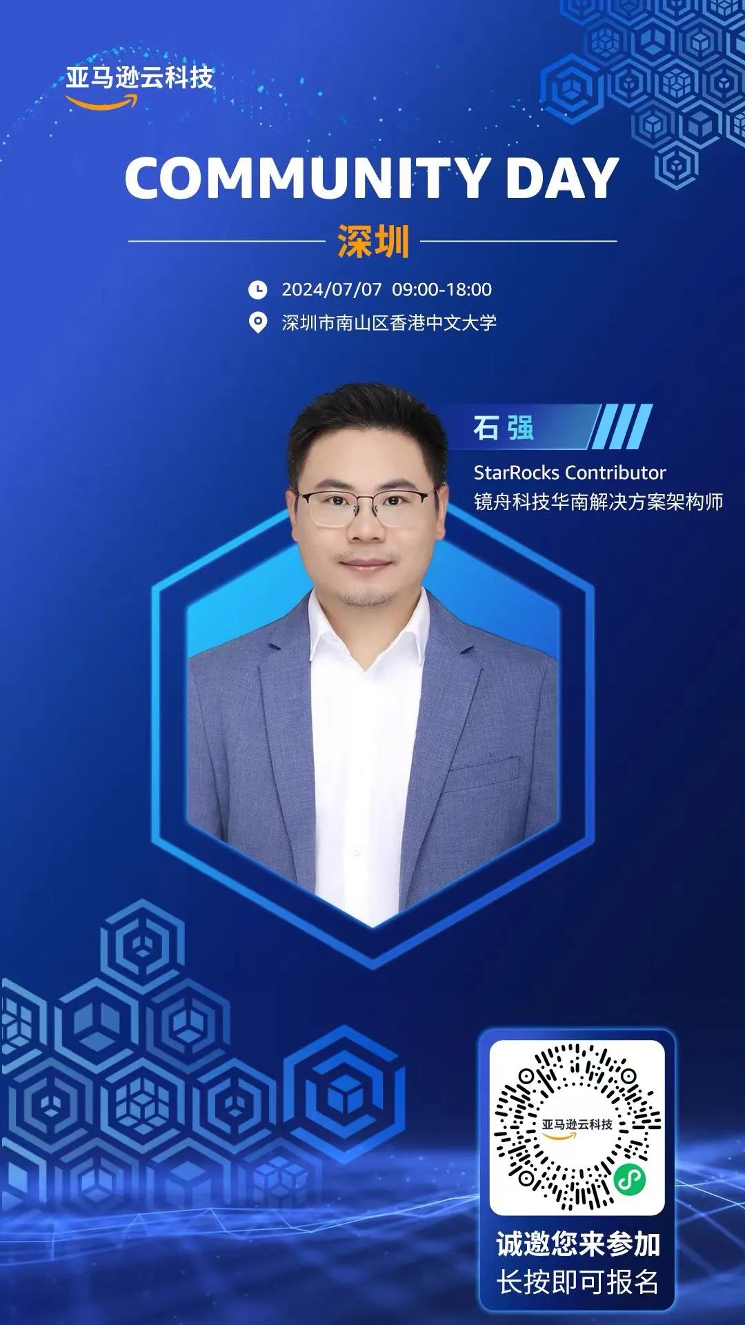 7月7日(本周日),亚马逊云科技 Community Day 深圳站即将开启,StarRocks 社区受邀参加本次云计算与 AI 技术交流活动。