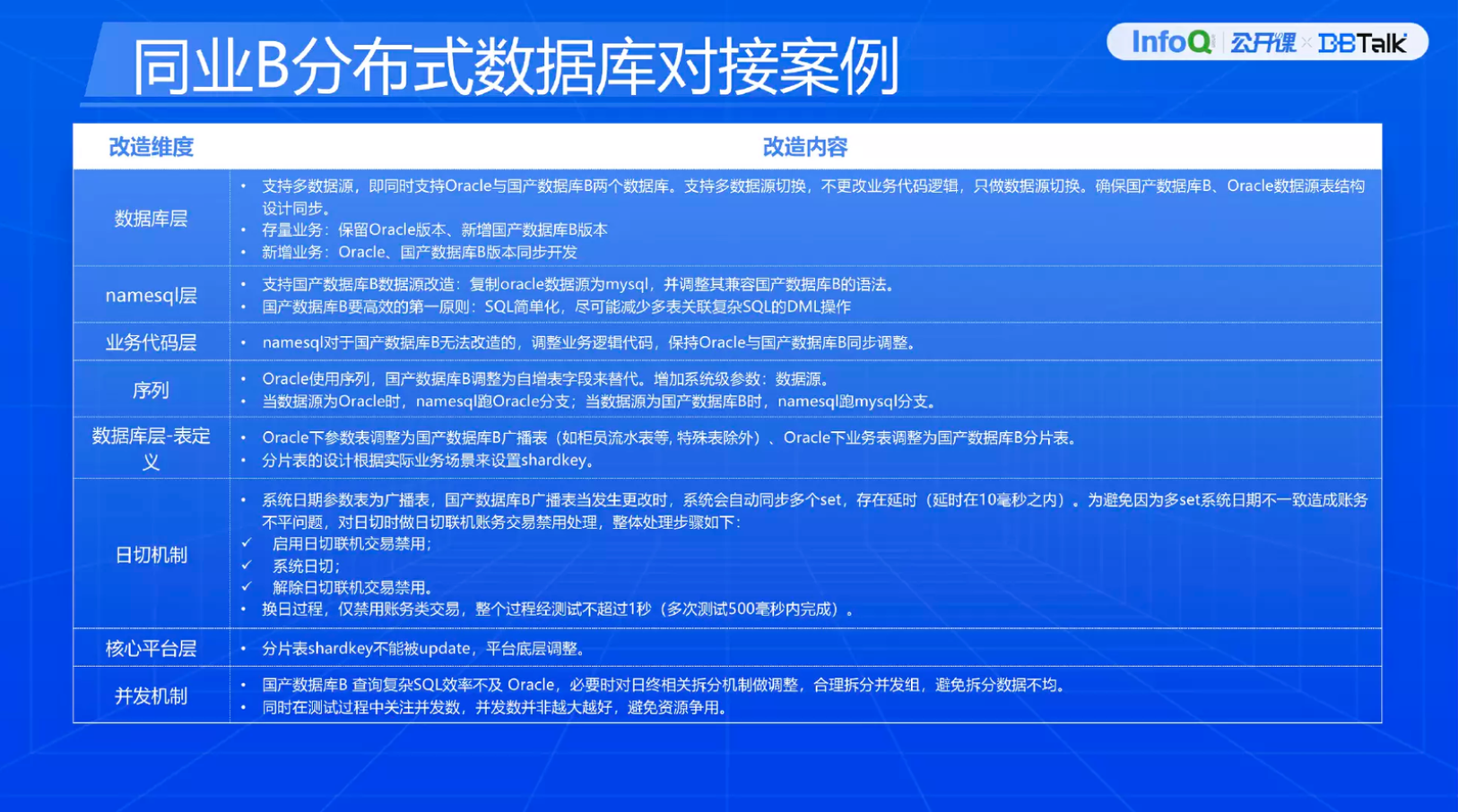 下面看对接的另外一个客户案例。这个客户案例涉及到很多维度的改造,因为用的是数据库早期的一个版本,也是国产数据库在国内早期的实践。