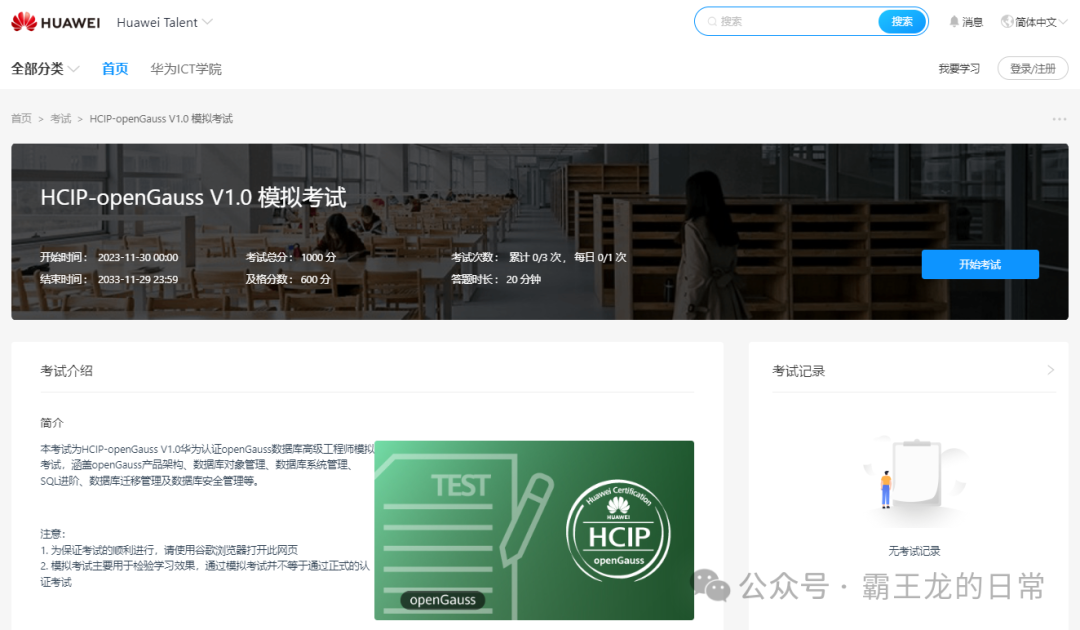 2023年11月30日华为官网显示 HCIP-openGauss 正式在中国区发布。由于工作繁忙,各种国产数据库相关项目改造使我分身乏术,根本忙不过来。IT圈内应该很有体会,信创以及国产化的改造推进,实在是忙麻了。我一直没有时间安排考试,但也不能一直往后拖。由于对openGauss有多年的使用基础,我索性先预约考试再说,倒逼式皮鞭抽空学习法,毕竟deadline是第一生产力。说干就干,6月11日进行网上预约,选择的是6月22日下午参加的考试,刚好周六,作为职场牛马的应有的觉悟,一定要选择周末考试,不能耽误工作日拉磨。