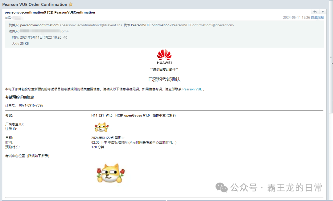因为考试包含实验,考试完成后,不会立马出结果。不过也很快,我是6月22日下午考试,第二天早上08:30就收到了邮件通知《恭喜您通过了2024年06月22日HCIP-openGauss认证考试》
