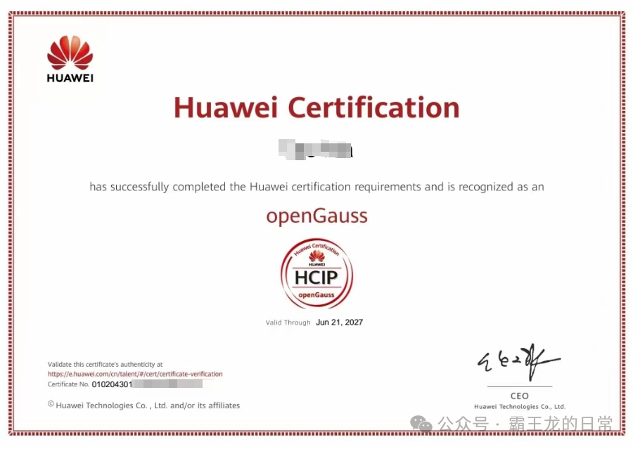 HCIP-openGauss,全称 Huawei Certified ICT Professional - openGauss | 华为认证openGauss数据库高级工程师