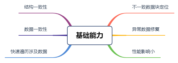 校验应当具备精确定位不一致数据块的位置的能力,用于支持后续进行的数据修订。