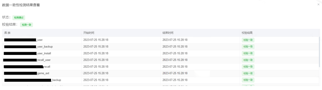 数据一致性校验,即对DTS的数据同步任务在目标产生(复制)的表数据,与在源库的原始数据进行对比,并给出对比结果。若存在不一致的情况则给出具体不一致的数据块,方便用户快速对不一致数据进行处理。它的基本原则是作为独立一个环节,既不能影响同步本身,也不能影响业务数据库的正常使用。