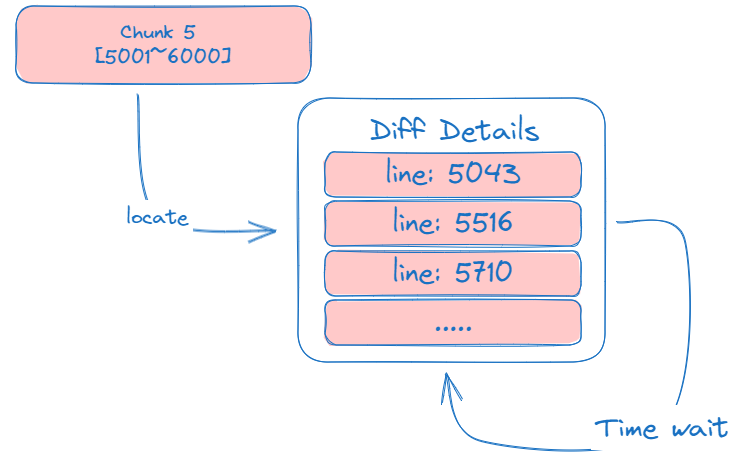 两侧的chunk[1001-2000]存在差异,那么需要按照精细拆分地形式定位到具体的差异行, 一般基于binlog的延迟在0秒(1秒内)时,行的差异数量是有限的,可以对其进行全部的记录或抽样记录。