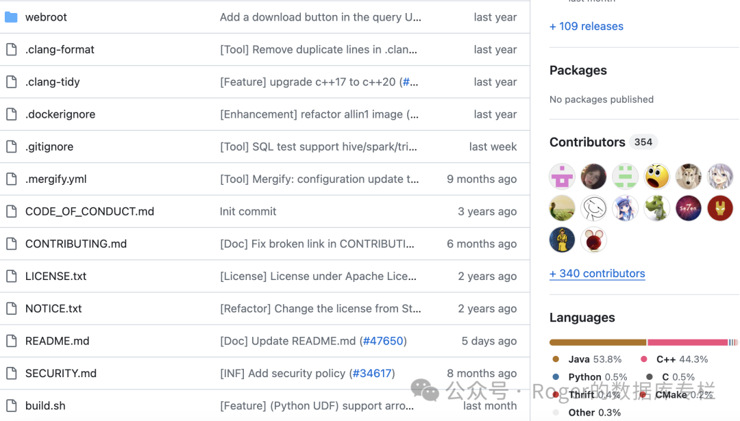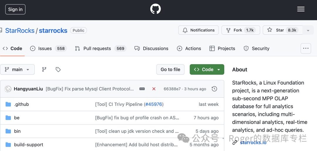 我特意去看了下StartRocks的Github,好家伙!短短2年的时间,居然有超过8300个Star,1700+ Fork以及 350+Contributors,不得不说其发展非常的迅速。