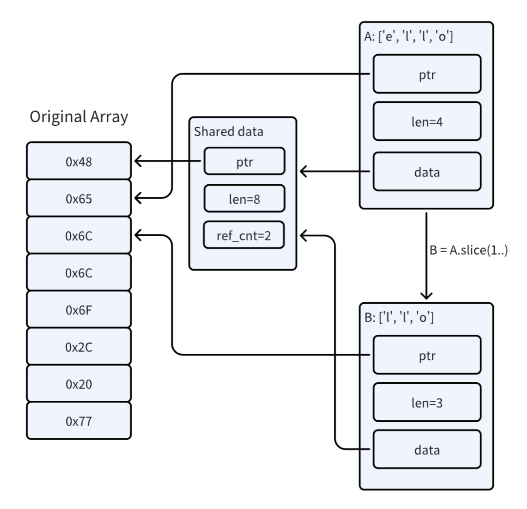 通过 From<Vec<u8>> 构造出来的的 Bytes 的 slice 操作基于引用计数,每次 slice 的时候需要复制原始 buffer 的指针、长度、引用计数、slice 返回值的指针和长度等等,和 Go 的基于可达性分析的垃圾回收机制比起来效率肯定是差很多的;