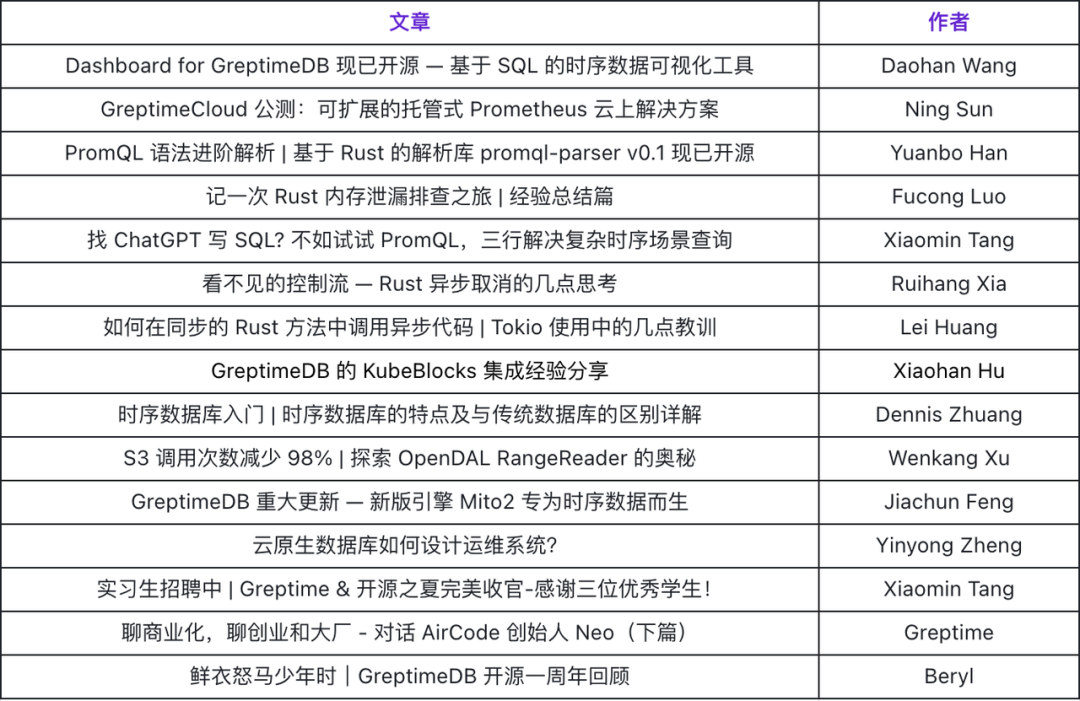 根据对读者的历史阅读浏览量统计,我们整理出了一份「Greptime 年度好文清单」,一起来回顾一下 2023 年 Greptime 文章高阅读量 TOP 15 榜单(官网还有英文榜单哦,喜欢英语技术文章的朋友不要错过哦),挑选你喜欢 or 你感兴趣的文章阅读吧~