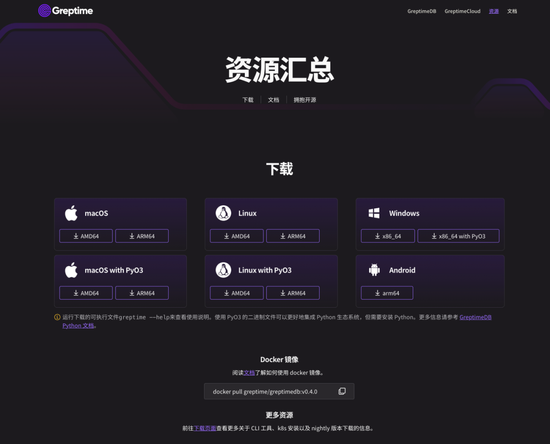 首先,你需要下载一个 GreptimeDB 实例,可以根据你的运行平台从 Greptime 资源页面[1] 下载打包好的二进制文件,也可以使用 docker 镜像。