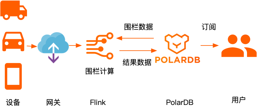 电子围栏表预先存储在PolarDB中,可定期进行刷新操作。电子围栏运算结果也写回到PolarDB中。