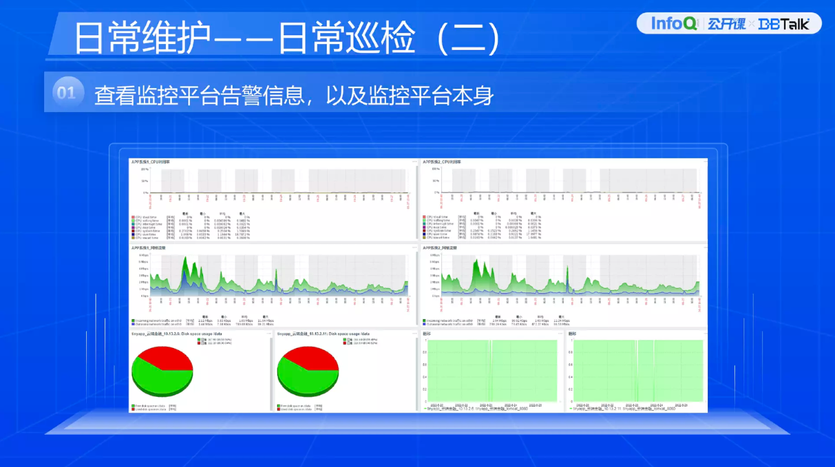为了保障业务的连续,我们肯定要开展日常的巡检工作。上面是监控平台,因为所有的业务系统都靠它接通,一旦它死掉,整个监控是无效的。腾讯云对数据库监控的平台做的比较好。