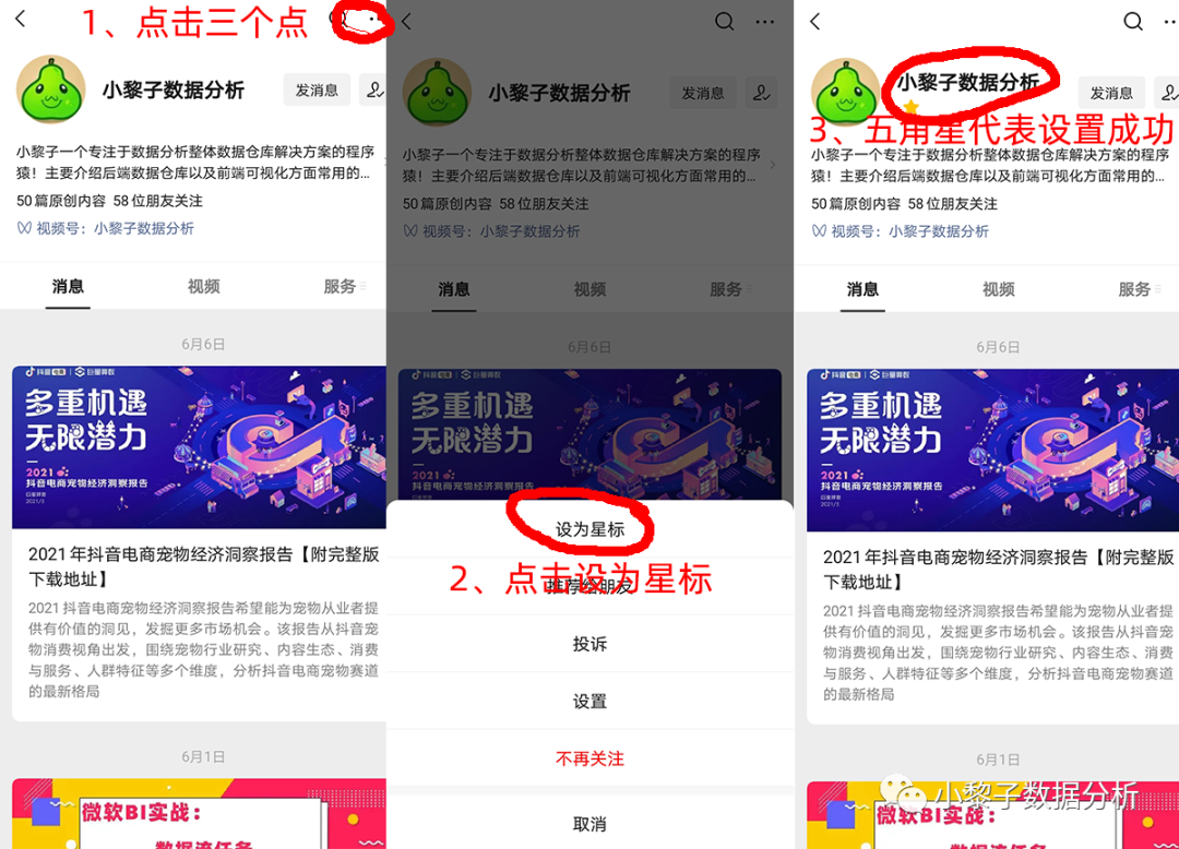 微信公众号改版,打乱了推文顺序,因此小黎子数据分析公众号推送的文章大家可能会在几分钟甚至几小时以后才能看到,所以小黎子请大家点开微信公众号【小黎子数据分析】的头像,点击右上方三个小黑点,将小黎子数据分析一键设置“星标置顶”!即可第一时间查看【小黎子数据分析】给大家带来的干货分享!小黎子非常感谢大家的支持!