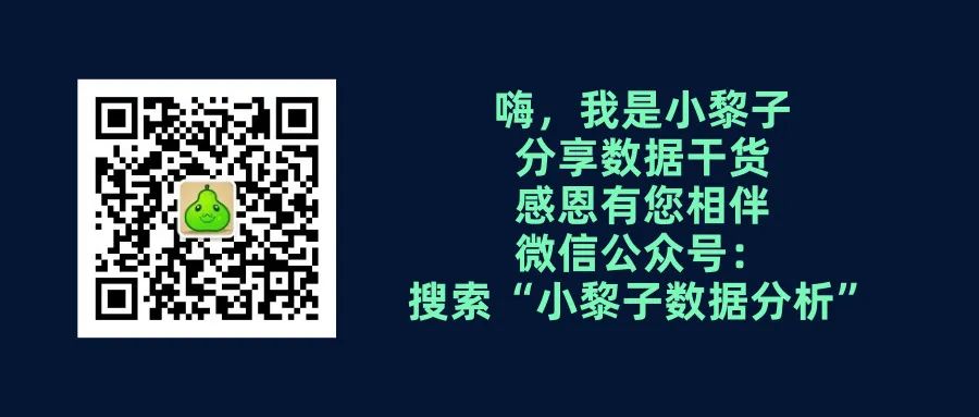 ↑ 欢迎点击上方“小黎子数据分析”关注我