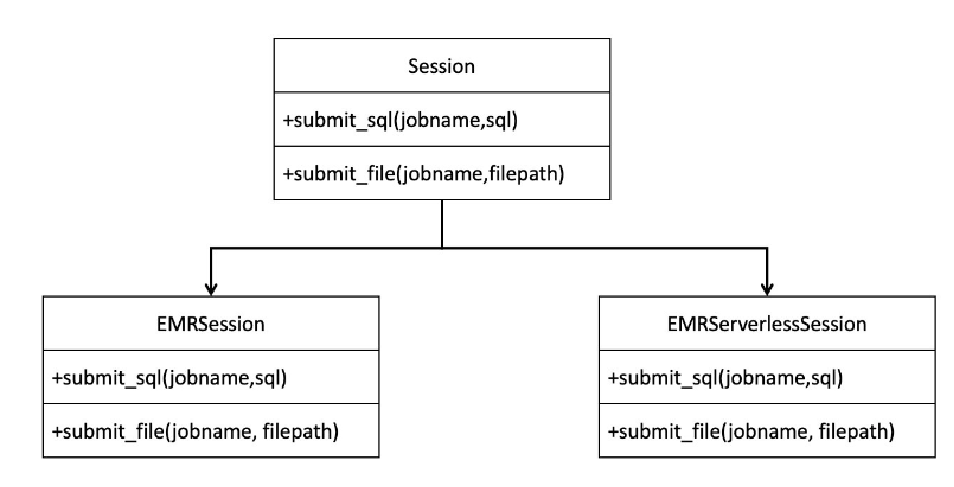 为了实现简化操作,我们封装了一个session对象,这个session包含两个子类:EMRSession和EMRServerlessSession。