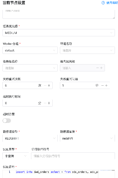 在使用DolphinScheduler进行Redshift开发时,推荐使用SQL Operator