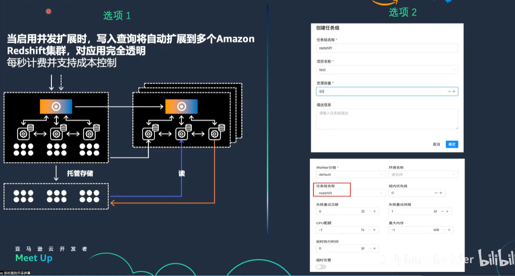 开启Redshift并发扩展:扩展到预置资源的10倍容量,但会增加额外成本。 使用DolphinScheduler的并发控制功能:创建任务组,设定资源容量,控制调度到Redshift的任务并发,避免集群过载。