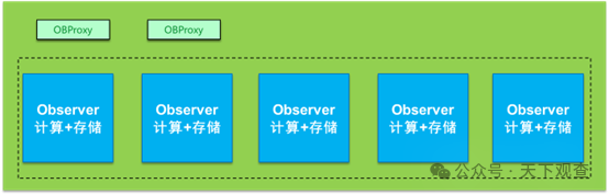 ob相比其他产品的部署架构比较独特,实现了对等部署,在安装时不用区分节点角色选择不同的安装程序,所有节点安装的软件都一样,顶多在数据库以外部署几个Obproxy,有些代替负载均衡网络设备的作用,更多是提供一种提前将应用链接,发送给对应数据所在的节点,以提升性能体验。