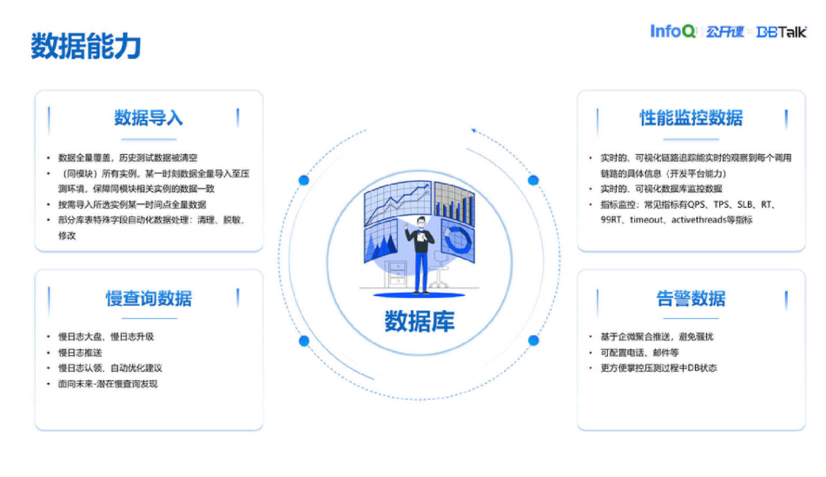 主流敏态场景包括微服务化、低代码和分布式的版本控制 Git,还有分布式数据库、全链路压测系统。因为全链路是一个系统化的工程,它有很多组件、DB 和服务组成一个全功能的产品。全链路业务系统的支撑重点之一就是数据的变化。
