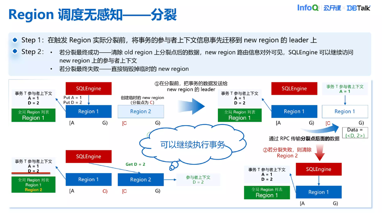 刚刚说了可用性,接下来讲讲对于这种 Region 分裂对于事务完整性是如何去保证的。