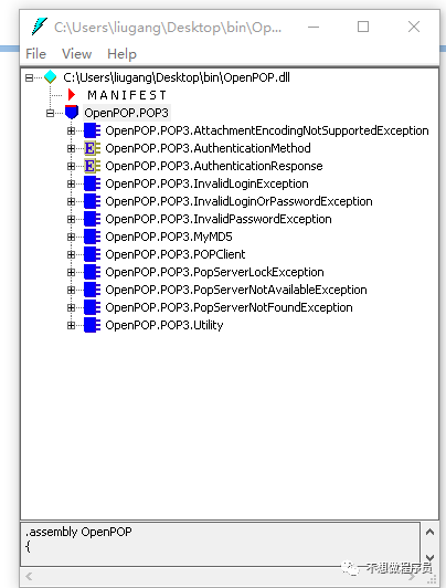 再用virtual studio自带的ildasm,把DLL导出为IL代码:共导出两个文件,一个后缀为res的资源文件和一个后缀为il的代码文件