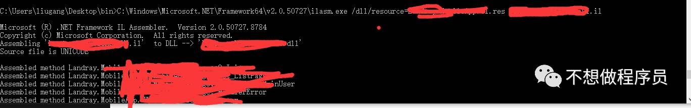 用ilasm对il代码进行重新编译,得到修改后的DLL,要根据目标平台,选择正确的ilasm版本