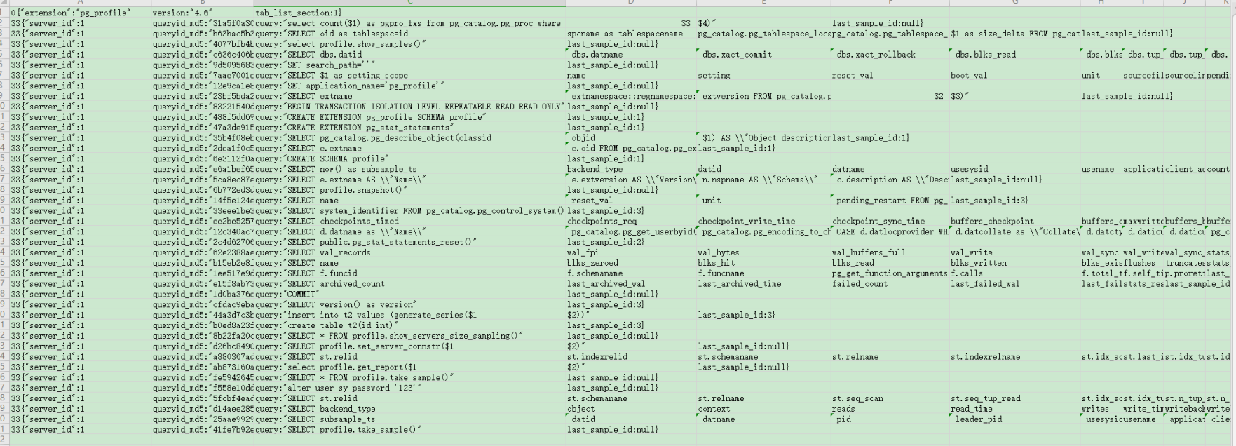 - 说明:当您需要将收集的数据发送给系统研发人员时,您可以从pg_profile扩展的实例中导出导出收集的信息,此功能非常有用。