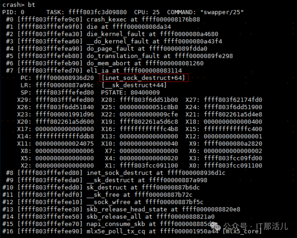 根据message日志信息,分析BMC日志后,找到当时死机状态的信息,发现是inet_sock_destruct,确认问题为网卡协议层问题。
