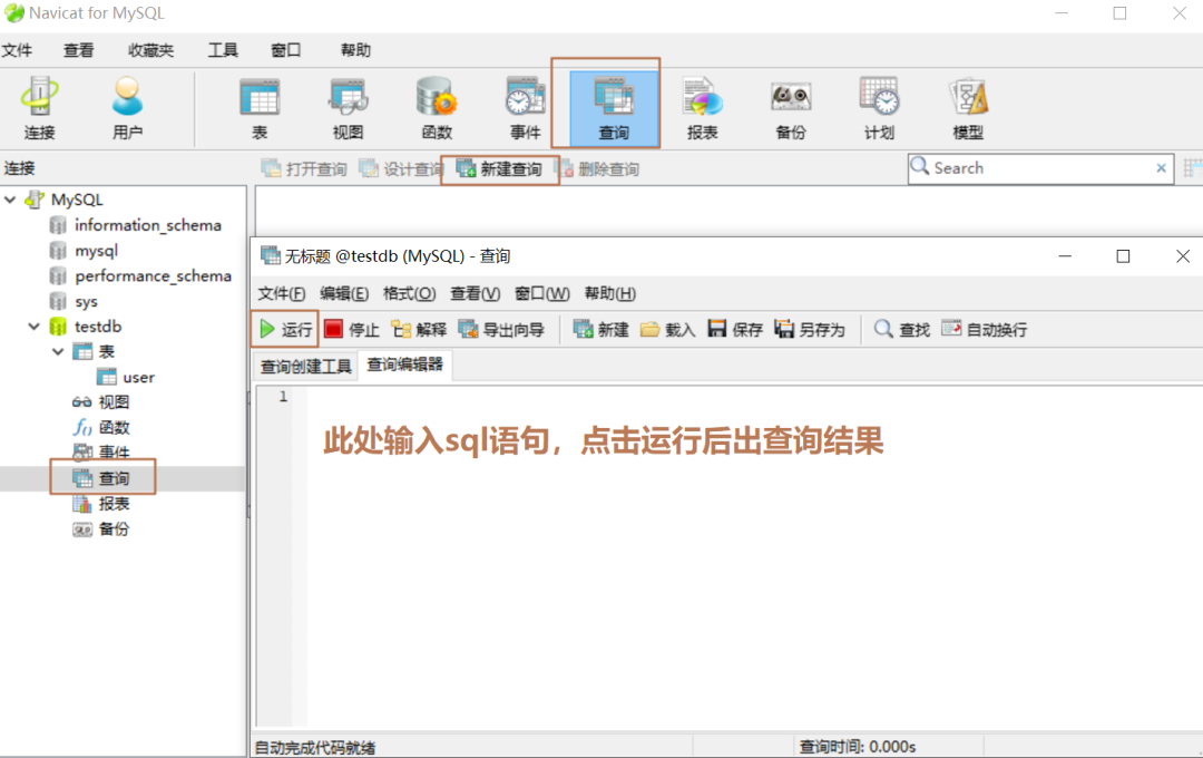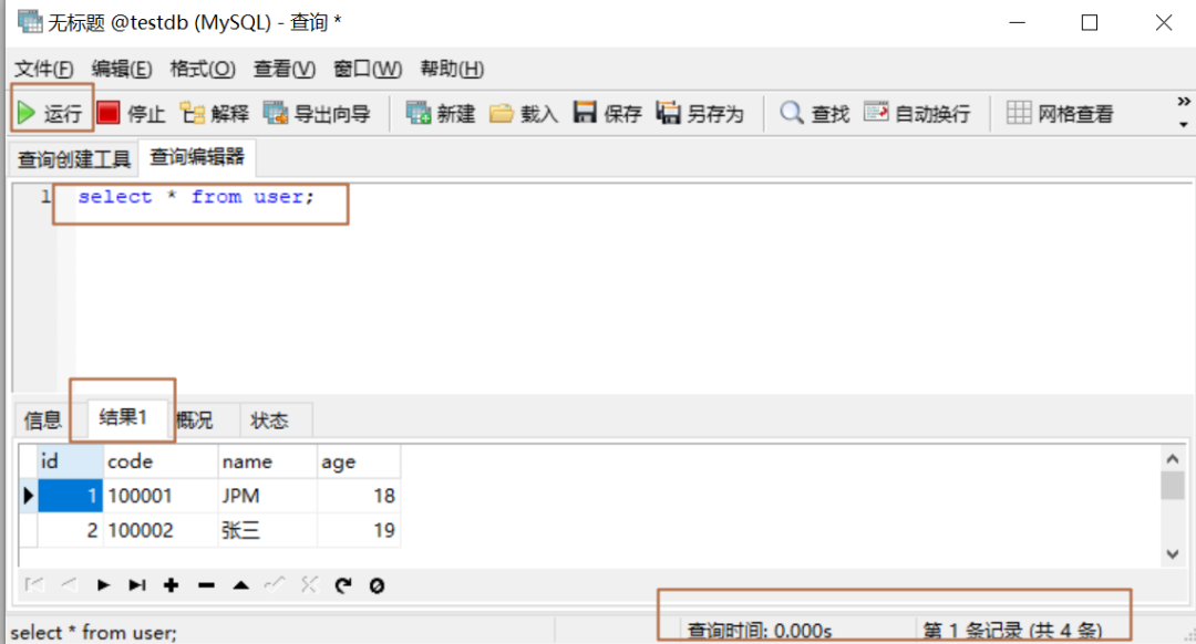 输入sql语句后,点击运行后可看到查询结果,如下图: