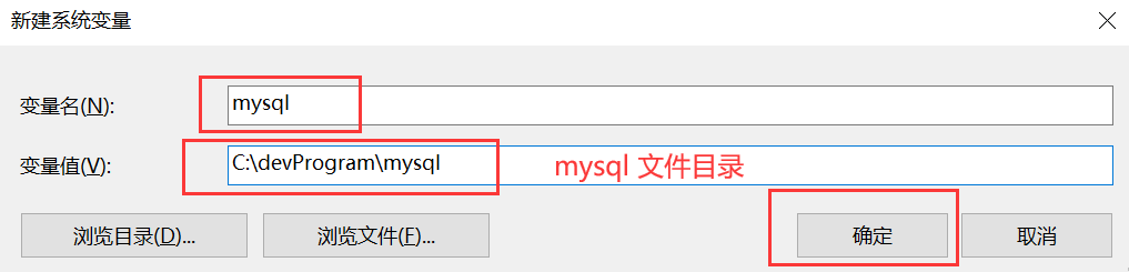 把新建的 mysql 变量添加到 Path 路径变量中,添加以下的内容,点击确定即可。
