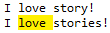 regex=love (?=story)匹配的结果如下(匹配“love ”后面是story):