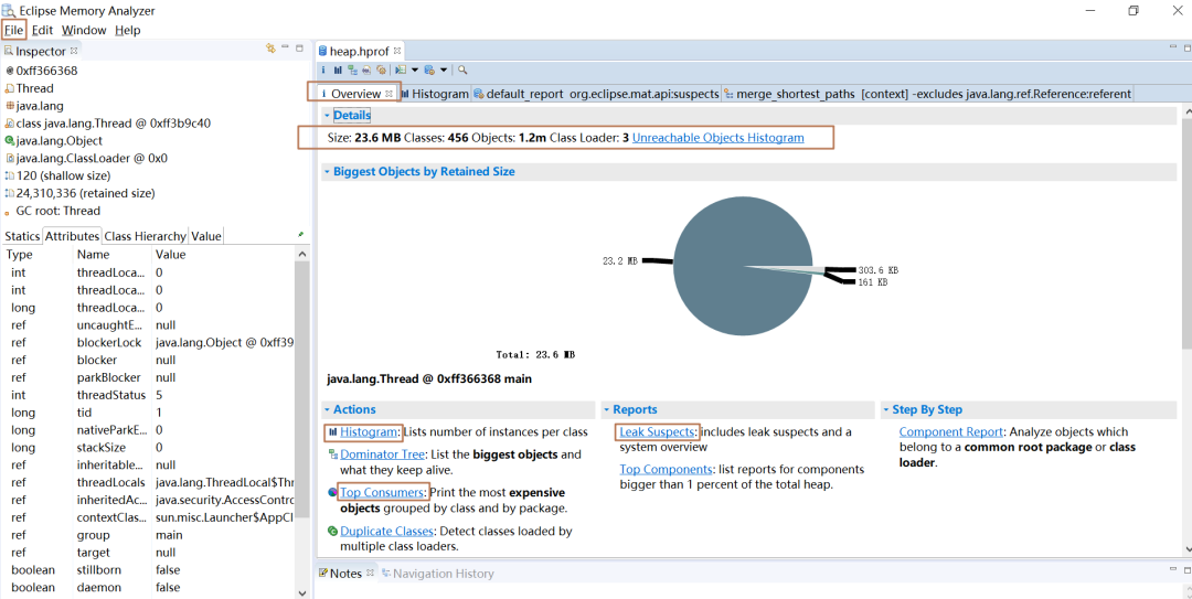 Leak Suspects:查看内存泄漏的可能原因