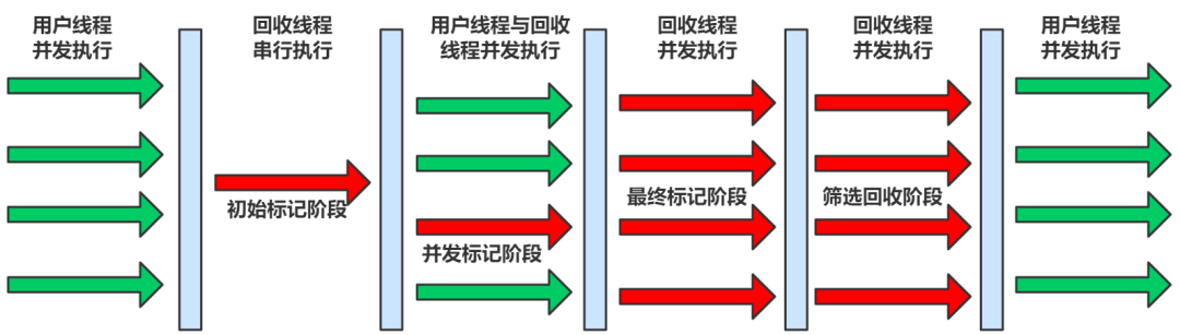 并发收集器(Concurrent Garbage Collector):CMS,G-First,用户线程和垃圾回收线程同时执行,当垃圾回收线程执行时,不会暂停用户线程的运行,适用于对用户请求响应时间有要求的场景,比如 Web 应用。