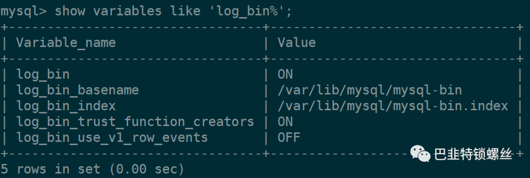 备注:log_bin如果是 OFF 代表是未开启状态。需要从配置文件修改。