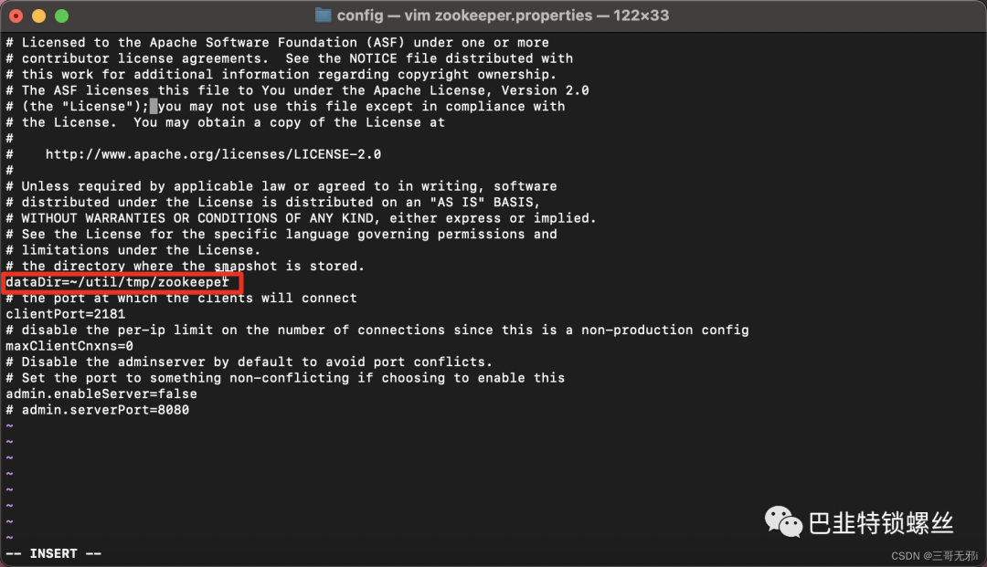 Kafka 依赖于 ZooKeeper 用于协调和管理集群,这里直接使用 kafka 自带的 zk。在 Kafka 目录下找到 config 文件夹,并编辑 zookeeper.properties 文件。