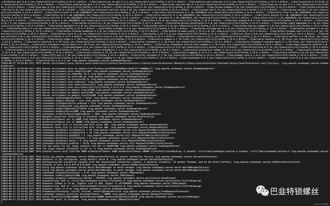 在 Kafka 目录下打开命令行终端,执行以下命令启动 ZooKeeper 服务: