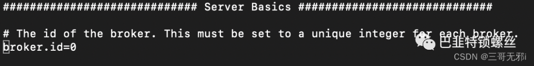 在 Kafka 目录下找到 config 文件夹,并编辑 server.properties 文件。