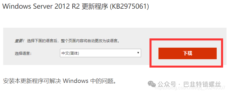 第一步,首先下载安装Windows Server 2012 R2 更新程序 (KB2975061)