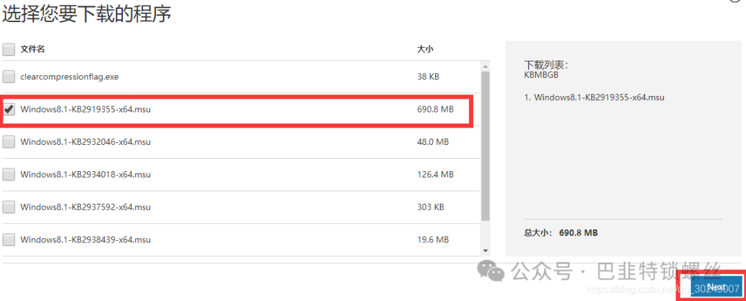 这里需要注意下,勾选下载 Windows8.1-KB2919355-x64.msu 即可